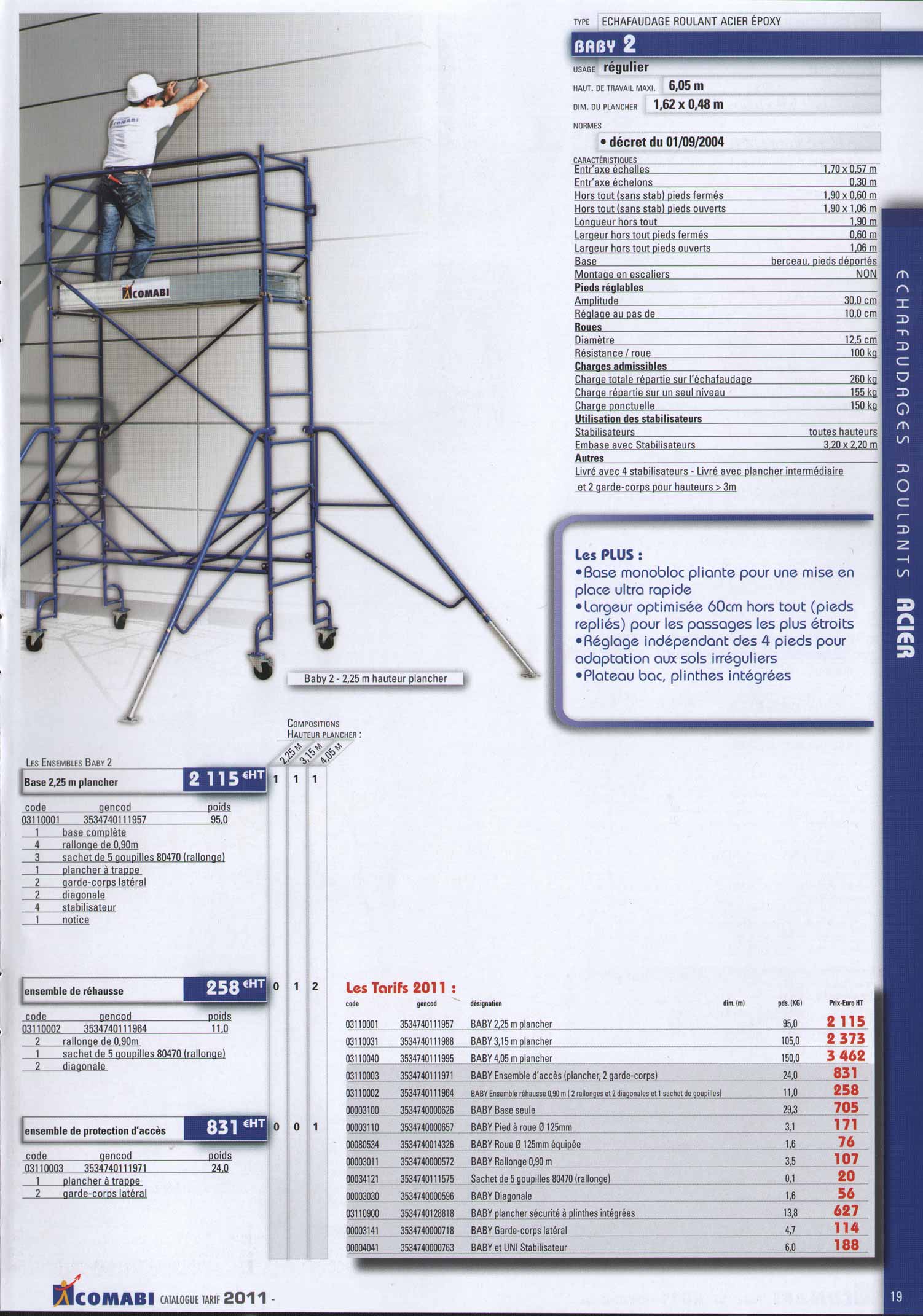 L’echafaudage roulant en acier galvanise JUNIOR de marque COMABI