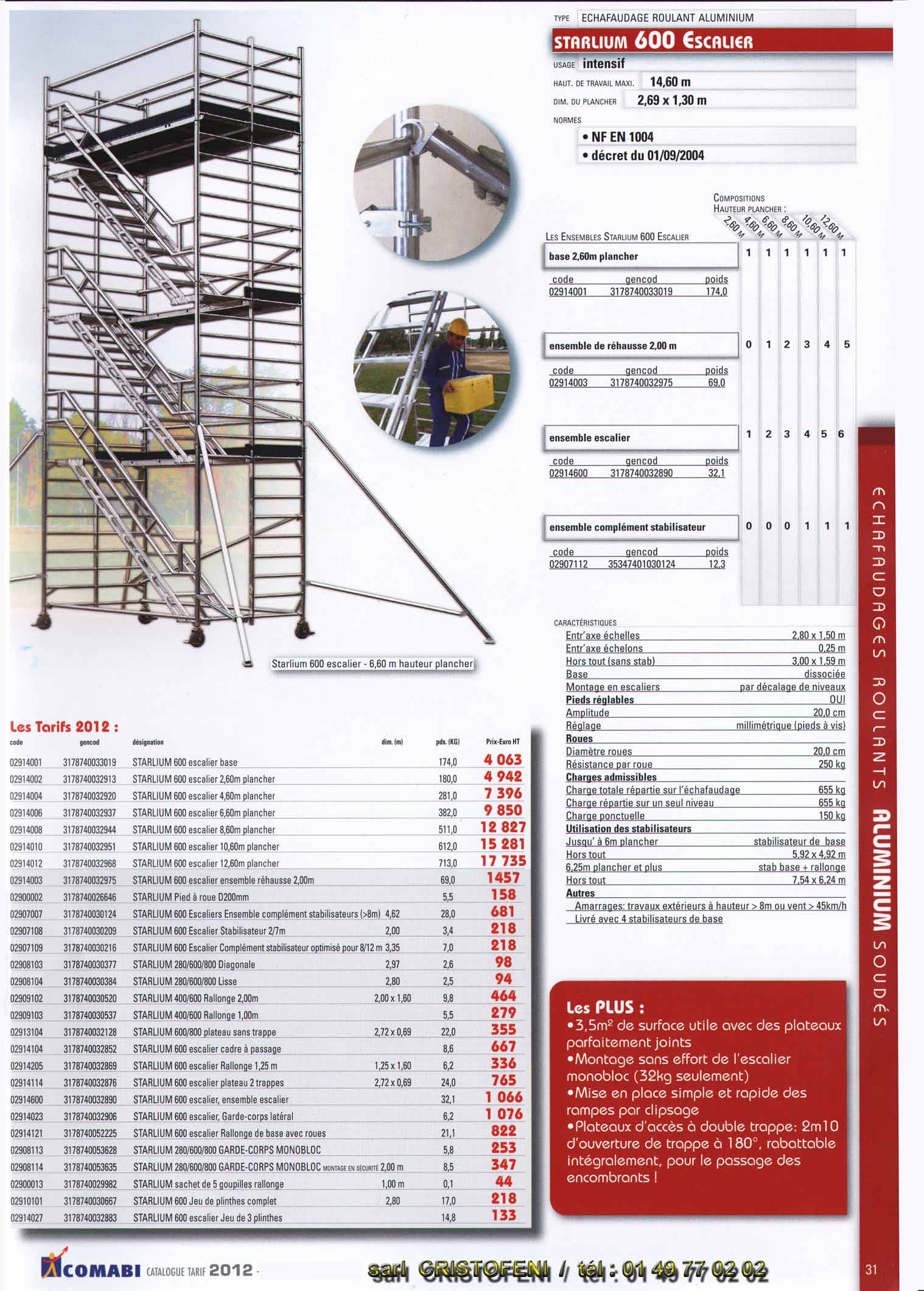 échafaudage aluminium roulant jusqu' à 14 mètres de travail tél : 09 70 75 73 13 |
