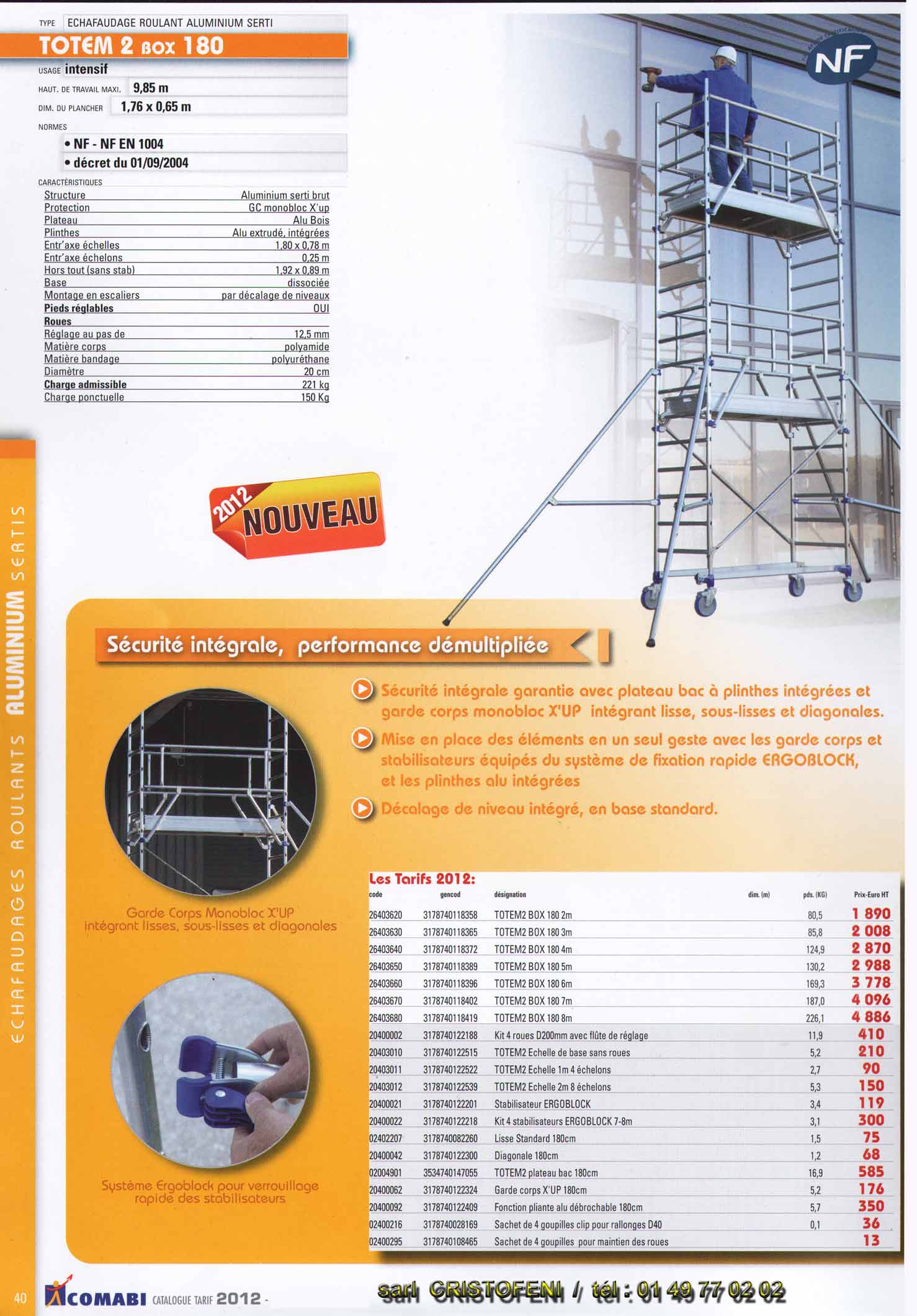 échafaudage aluminium roulant jusqu' à 9.85 mètres de travail |